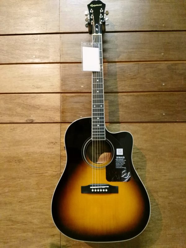 The AJ–220SCE has long been one of Epiphone´s best selling acoustic guitars with the look, sound, and build quality that first time players and professionals expect to hear when they pick up an Epiphone. The Advanced Jumbo style was first produced at the legendary Kalamazoo factory in the 1930s has been a favorite of musicians from every field of popular music ever since. The Advanced Jumbo sound is commanding when required but it´s also well balanced which makes it perfect for stage and studio. Now with a killer cutaway and Shadow‘s new Performer Tuner™ preamp system, the AJ–220SCE takes yet another step above the competition.