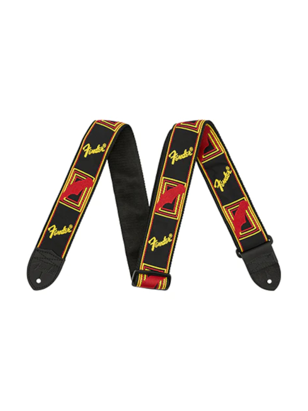 FENDER 2″ MONOGRAMMED GUITAR STRAP, BLACK/YELLOW/RED