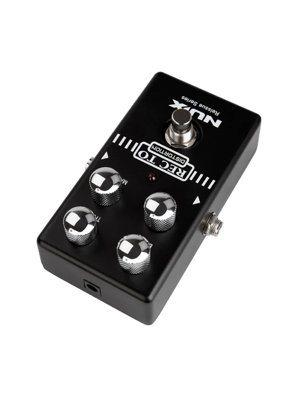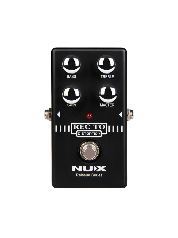 The NUX REC TO DISTORTION pedal from the Reissue Series as a heavy distortion sound with tight bass response.